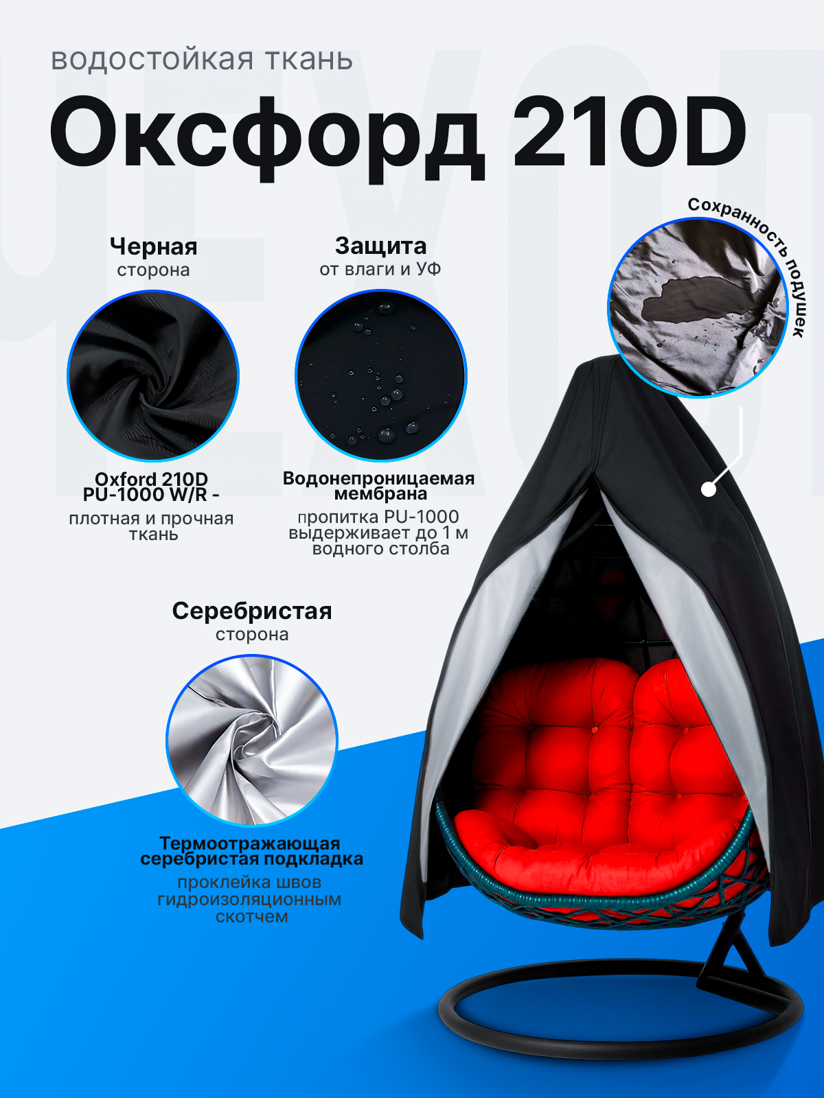 Чехол 200х308 для 2х местного кресла-кокон 230х200 с молнией черный + серебристый