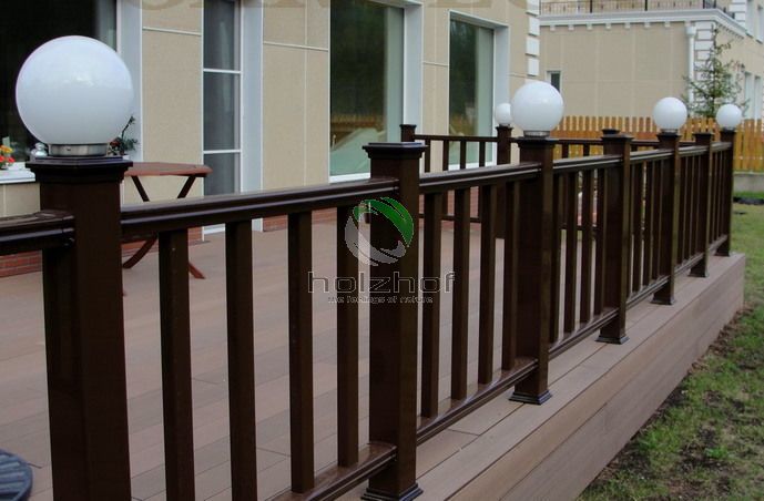 В связи с тем, что терраса находится под открытым небом, а проходимость по ней небольшая, то решено было сделать монтаж из шовной террасной доски Holzhof коричневого цвета.