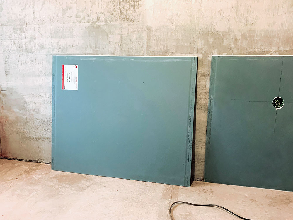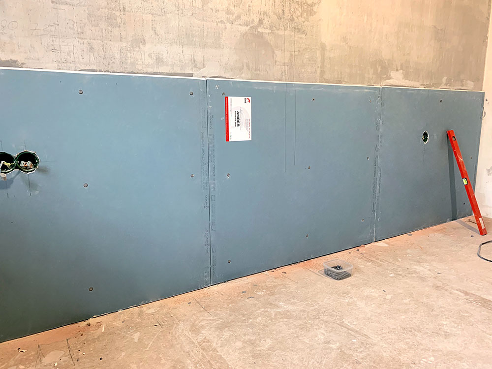 Как обычно, клиент очень долго выбирал, и перебрал наверное все возможные решения. Но, в конечном итоге, остановился на звукоизоляционной системе с применением плит Amber SoundStop panel.